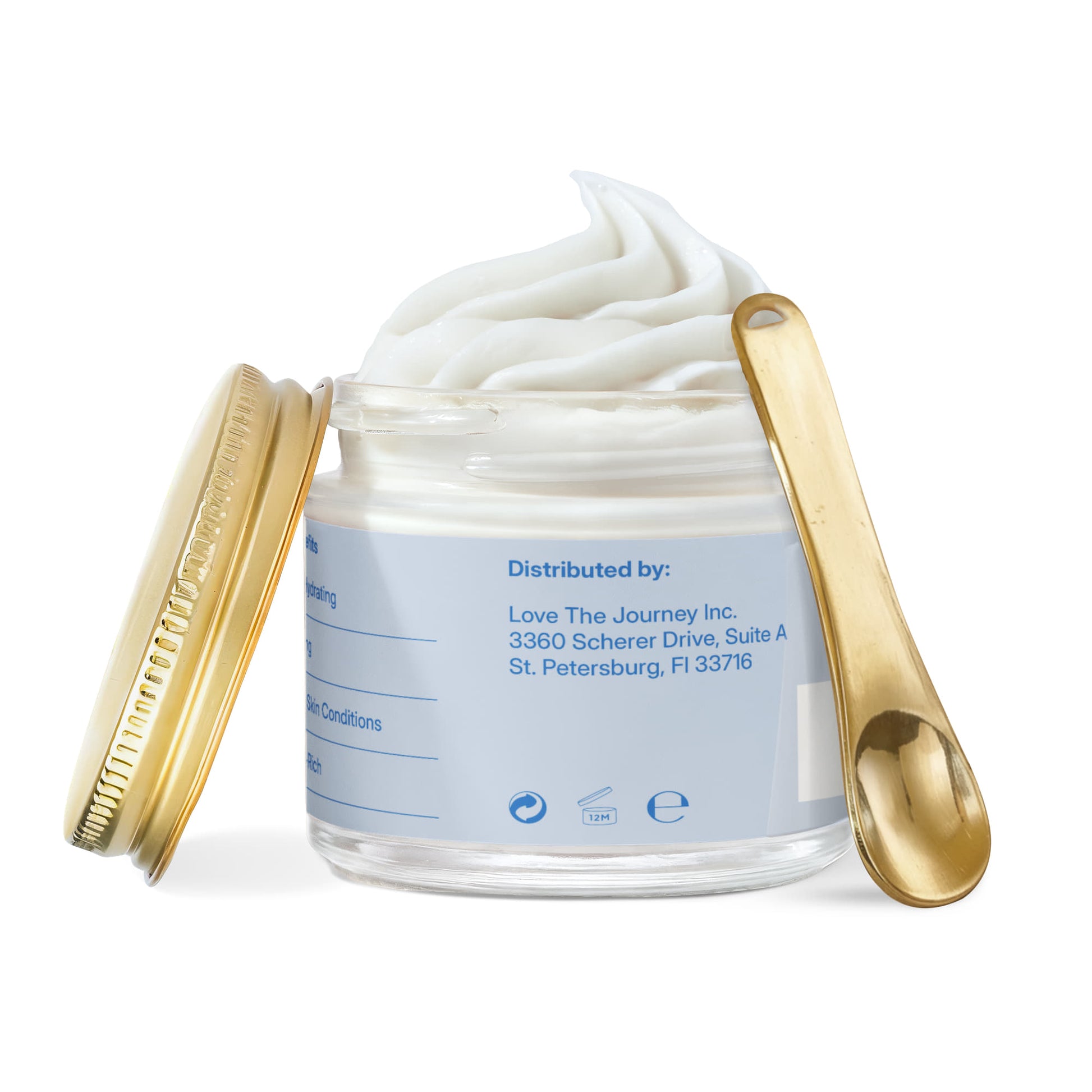 After cleansing, scoop a small amount and massage onto desired areas using upward, circular motions. Use daily for soft, hydrated skin.