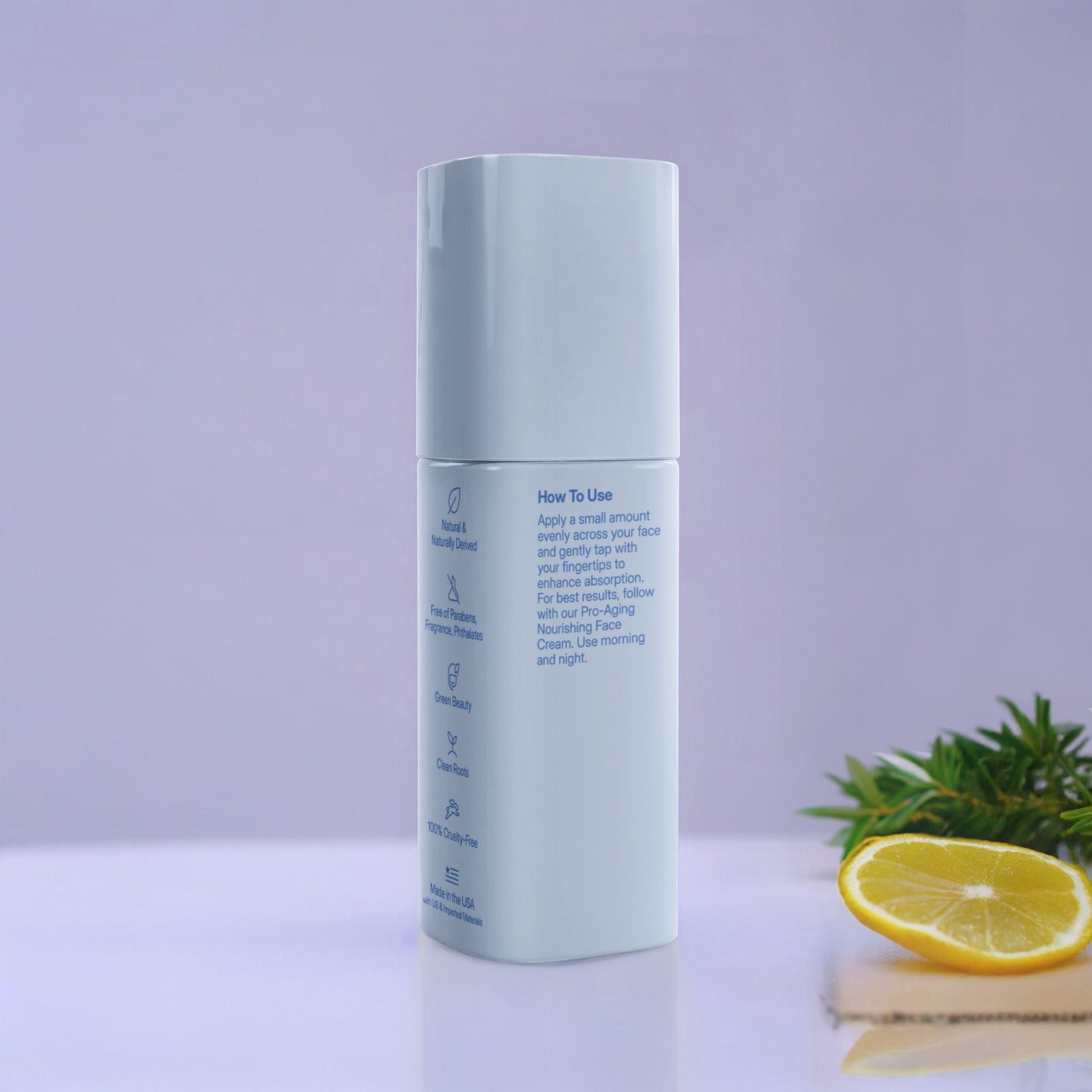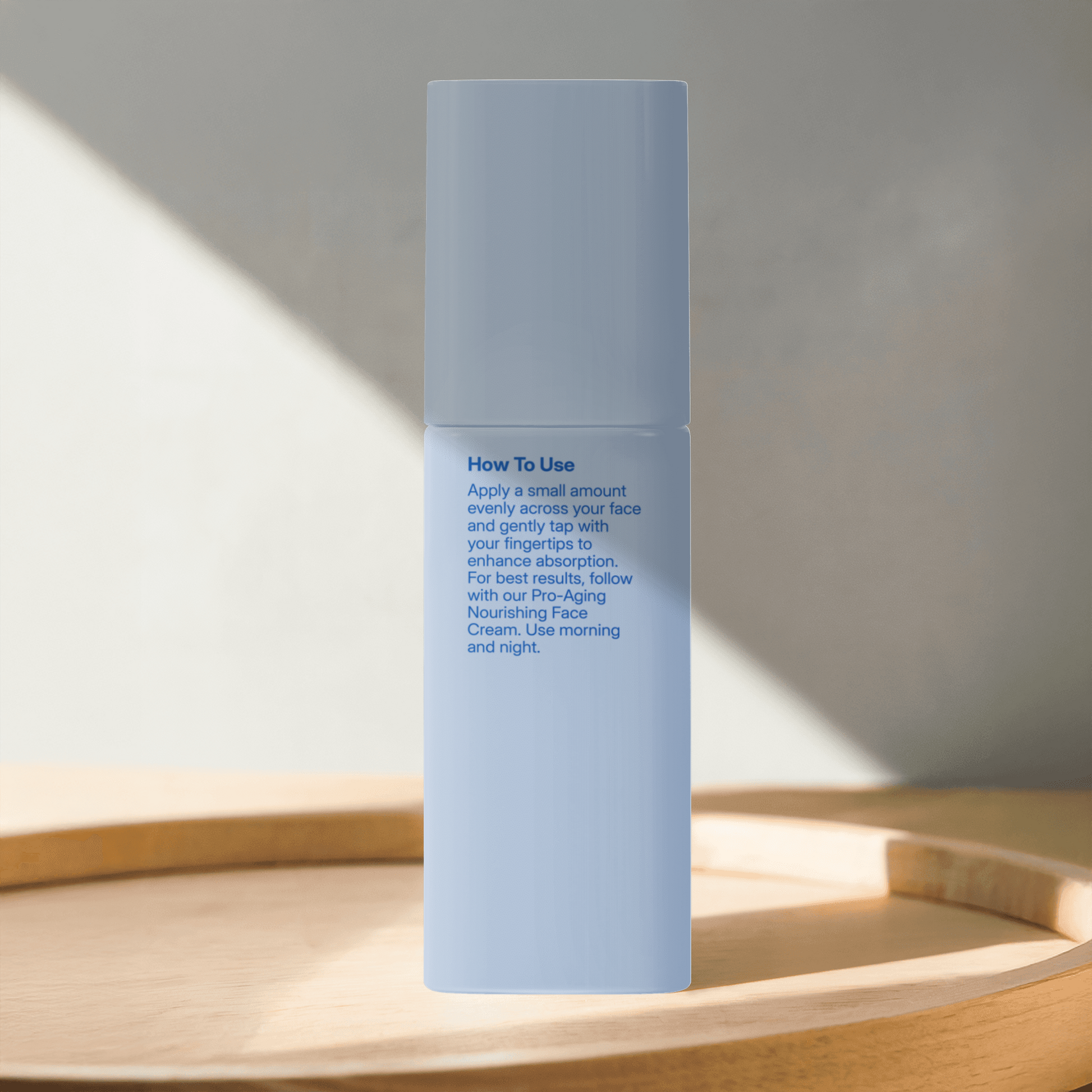 Apply a small amount evenly across your face and gently tap with your fingertips to enhance absorption. For best results, follow with our Pro-Aging Nourishing Face Cream. Use morning and night.